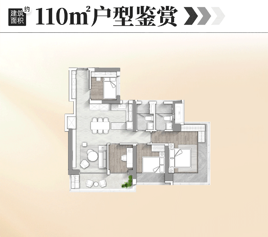 以我们的领会,项目二期就加推了3栋建面约110㎡户型。引进高能级配套,